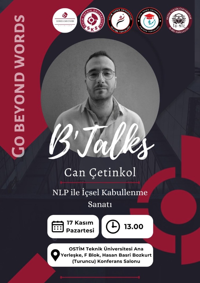 Ostim Teknik Üniversitesi, B’Talks etkinlik serisi kapsamında NLP Uzmanı Can Çetinkol (IN)’u ağırlamaktan memnuniyet duyar.